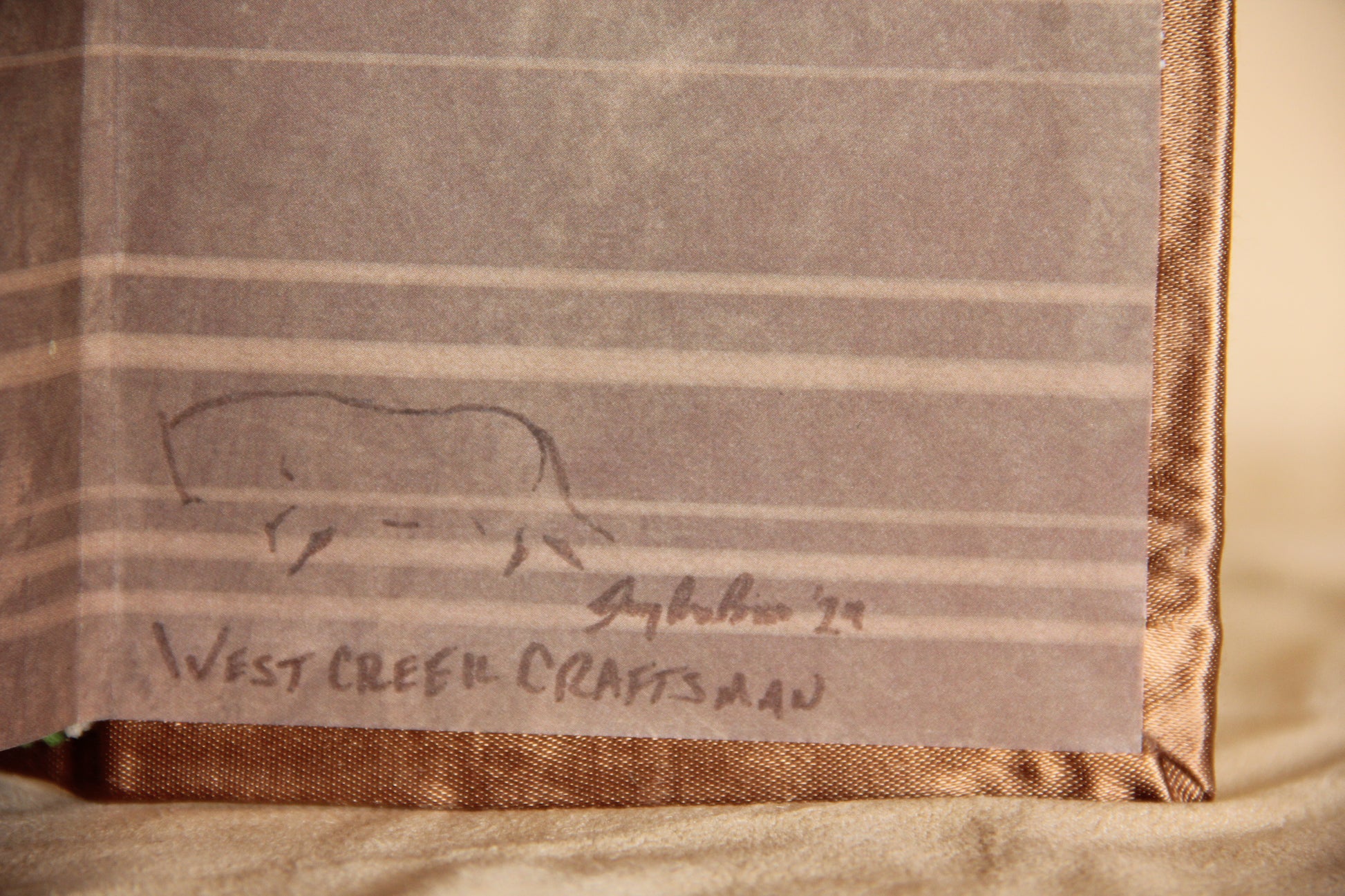 Hardcover bound in gold satin, with a hand-woven bookmark for convince. This book contains 50 blank pages of calligraphy paper that are approximately 4x6". Perfect for a journal or small sketchbook.